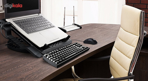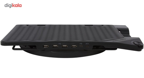 پایهی خنککنندهی «ERGOSTAND III» محصول برند «کولرمستر» (Cooler Master) است. بدنهی این خنککننده از توری فلزی و پلاستیک ساخته شده است و یک عدد فن بسیار بزرگ 230 میلیمتری در مرکز آن، خنکسازی لپتاپ را انجام میدهد. این فن، عملکرد کمصدایی دارد و صدای آن در حین کار، بههیچوجه آزارتان نخواهد داد. بخش توری روی خنککننده قابلجداشدن است و میتوانید برای تمیزکاری دورهای، آن را از جای خود خارج کنید. بدنهی خنککننده طوری طراحی شده که امکان بالاآوردن لپتاپ و زاویهدادن به آن فراهم باشد. این کار با استفاده از دندههایی که در تکهی پایینی بدنه ایجاد شده، امکانپذیر است. با استفاده از 6 دندهای که در NOTEPAL ERGOSTAND LITE وجود دارد، میتوان 6 زاویهی متفاوت به خنککننده داد. سرعت گردش فن در این محصول متغیر است و میتوان سرعت گردش فن را از 500 تا 800 دور بر دقیقه تنظیم کرد. این کار با استفاده از پیچ گردی که از جنس آلومینیوم ساخته شده، بسیار جذاب و لذتبخش خواهد بود. برق موردنیاز فن برای چرخش توسط یکی از پورتهای USB لپتاپ تامین میشود. روی بدنهی این خنککننده شاهد 4 عدد پورتUSB هستیم که کارکردی مشابه هاب USB دارند و اجازه میدهند لوازم جانبی خود را با استفاده از آنها به کامپیوتر وصل کنید. لپتاپهای تا 17 اینچ در ERGOSTAND III قابلاستفاده هستند و دو گیرهی پلاستیکی، امنیت قرارگیری لپتاپ در زاویههای نزدیک به عمود را تضمین میکنند.