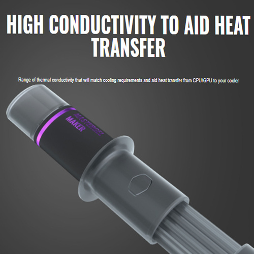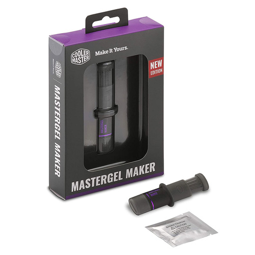 خمیر سیلیکون حرفه ای کولر مستر مدل Master Gel MAKER با ساخت سال 2020 با جدیدترین فن آوری ساخت از نوع خمیر حرارتی فوق حرفه ای است که برای اکثر پردازنده های AMD و Intel و بویژه کارت های گرافیک استفاده می شود. خمیر سیلیکون یا خمیر حرارتی ماده است که رابط انتقال حرارت از روی چیپ به روی هیت سینک است. این رسانای گرمایی بین دو قطعه فلزی مورد استفاده قرار می‌گیرد که معمولاً این دو قطعه پردازنده و سیستم خنک کننده یا هیت‌ سینک هستند. توسط این خمیر گرما میان پردازنده و هیت‌ سینک جابجا شده و باعث کارکرد بهتر پردازنده می شود. خمیر سیلیکون دارای انواع مختلفی است که برای هر پردازنده بهتر است از نوع خاصی استفاده شود تا پردازنده کارکرد بهتری داشته باشد. تاثیر استفاده از خمیر سیلیکون حرفه ای کولر مستر مدل Master Gel Pro V2 را بازی کنان حرفه ای بازی های رایانه ای و طراحان و گرافییست های حرفه ای در کار خود درک می کنند و تاثیر سرعت کارکرد در سیستم خود متوجه می شوند. این خمیر دارای رسانائی گرمایی بیشتر از 11 وات بر متر-کلوین می باشد.