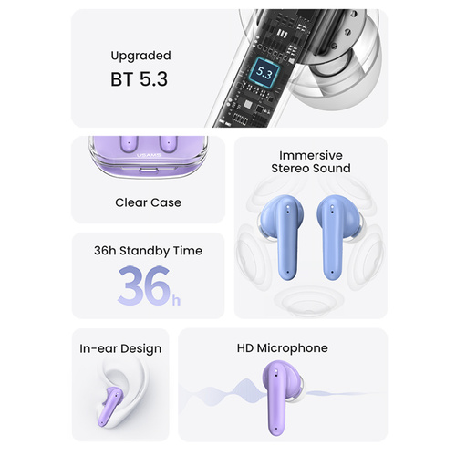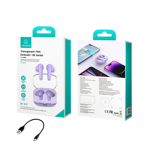 هندزفری بلوتوثی یوسمز مدل BE16 یک هندزفری بیسیم با طراحی زیبا از برند معتبر USAMS می‌باشد.جنس بدنه هندزفری بلوتوثی یوسمز از pc است که بدنه نسبتاً محکم و با کیفیتی دارد. ویژگی منحصر به فرد این هندزفری طراحی زیبای آن می‌باشد که به صورت شفاف طراحی شده است. کیس شارژ هندزفری BE16 دارای ظرفیت 300 میلی آمپر است که می‌تواند 3 الی 4 بار هندزفری شما را شارژ کند.مدت زمان پخش موسیقی برای این هندزفری حدود 6 ساعت (در صورت قرار دادن صدا به میزان 80 درصد) و مدت مکالمه آن حدود 3 ساعت می‌باشد. شما می‌توانید تا 36 ساعت در صورت استفاده از کیس شارژ آن از این هندزفری استفاده کنید و نیازی به شارژ نداشته باشید. هندزفری بلوتوثی usams با توجه به اینکه از دارای میکروفون خوبی می‌باشد، شما می‌توانید یک مکالمه با کیفیت و به صورت HD داشته باشید. با توجه به کیفیت خوب صدا و قابلیت‌هایی که دارد مناسب برای بازی،موسیقی و مکالمه می ‌باشد. این هندزفری دارای اسپیکرهایی با قطر 10 میلیمتر می‌باشد که باعث می‌شود شما موسیقی را با کیفیت بالا و با بیس مناسب گوش کنید و از آن لذت ببرید. هندزفری یوسمز BE16 دارای حسگر لمسی برای برقراری تماس و مدیریت موسیقی می‌باشد که شما می‌توانید این قابلیت‌ها را با تعداد ضربه به قسمت حسگر استفاده کنید.(برای اطلاع از قابلیت‌های حسگر می‌توانید به تصاویر محصول مراجعه کنید) کیس شارژ هندزفری usams دارای ابعاد 58.7×57.7×48.4 میلی‌متر می‌باشد که دارای سایز نسبتا مناسبی بوده که برای استفاده روزانه بسیار مناسب است. حساسیت این هندزفری 3+99 دسی بل یا 3-99 دسی بل است.قابلیت اتصال به گوشی‌های اندروید و گوشی‌های آیفون را داراست و نسخه بلوتوث آن 5.3 می باشد که از جدیدترین نسخه‌های بلوتوث می باشد و سرعت انتقال اطلاعات نسبت به نسخه‌های قبلی تا چند برابر بهتر انجام می‌شود.