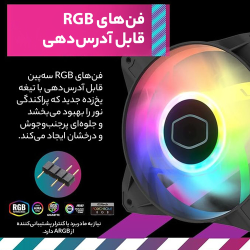 دارای 3 عدد فن نصب شده مدل CF120 ARGB در قسمت جلویی