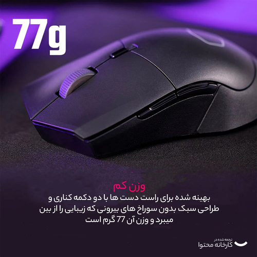 MM311 همه چیز مورد نیاز برای برنده شدن را در اختیار شما قرار می دهد، با این موس قهرمان بازی هایتان و یا خالق یک اثر هنری بی نظیر شوید مهم نیست در حین انجام بازی باشید یا انجام کار این موس همیشه شما را در هر سطحی برنده می کند، سنسور نوری 10000 DPI قابل تنظیم ، پایه های PTFE واقعی برای حرکت بی نظیر، و بی سیم 2.4 گیگاهرتز برای تطبیق پذیری عالی با هر سیستمی از مزایای اولیه این موس است که همه در یک پوسته بسیار سبک از متریال ABS قرار دارند و در نهایت این موس با باتری خود دارای وزن 77 گرم میباشد. وزن سبک اما عملکرد سنگین از خصوصیات تمامی موس های حرفه ای کولر مستر است، MM311 واقعا یک سرو گردن از تمامی موس های رایج در بازار حتی برند های اختصاصی موس و کیبورد بالاتر است.